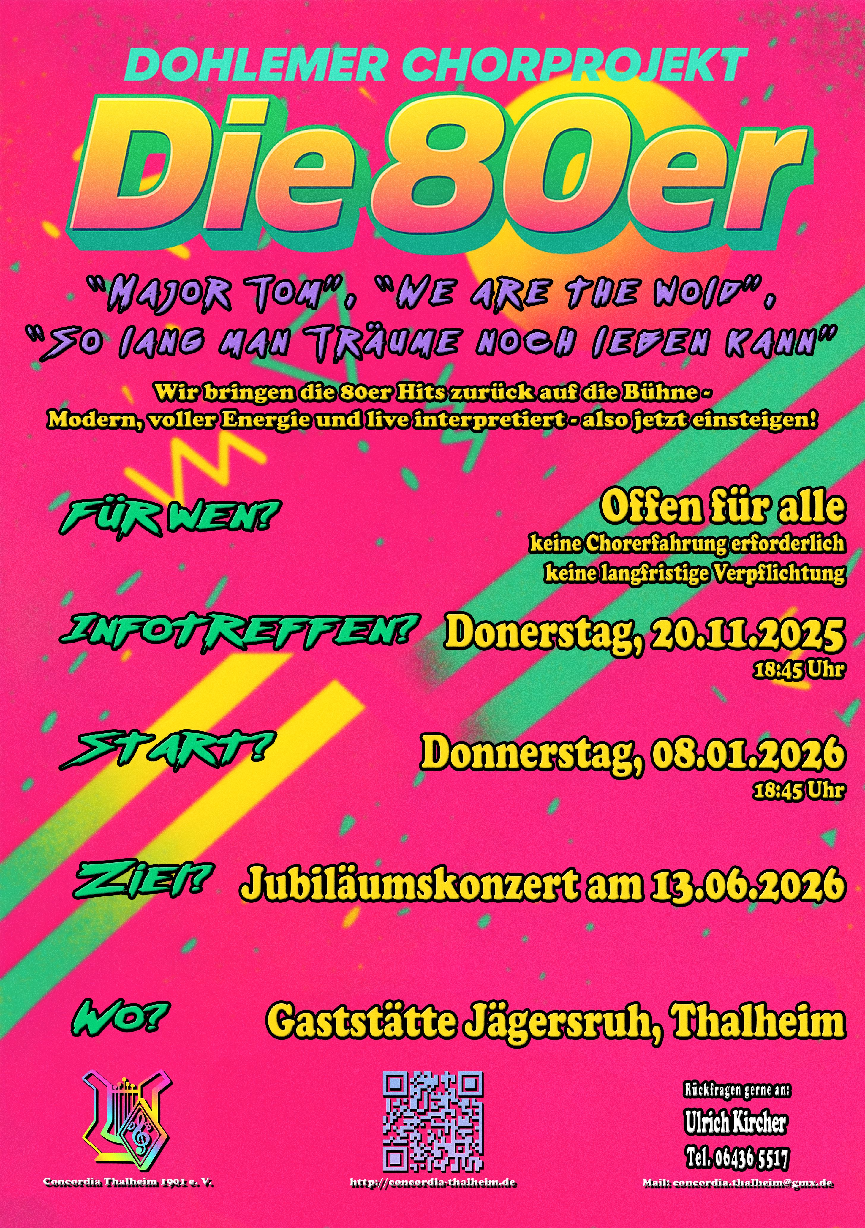Aus Anlass unseres 125-jährigen Vereinsjubiläums im nächsten Jahr gründen wir einen Projektchor, der am Jubiläumskonzert am 13.06.2026 singen wird.